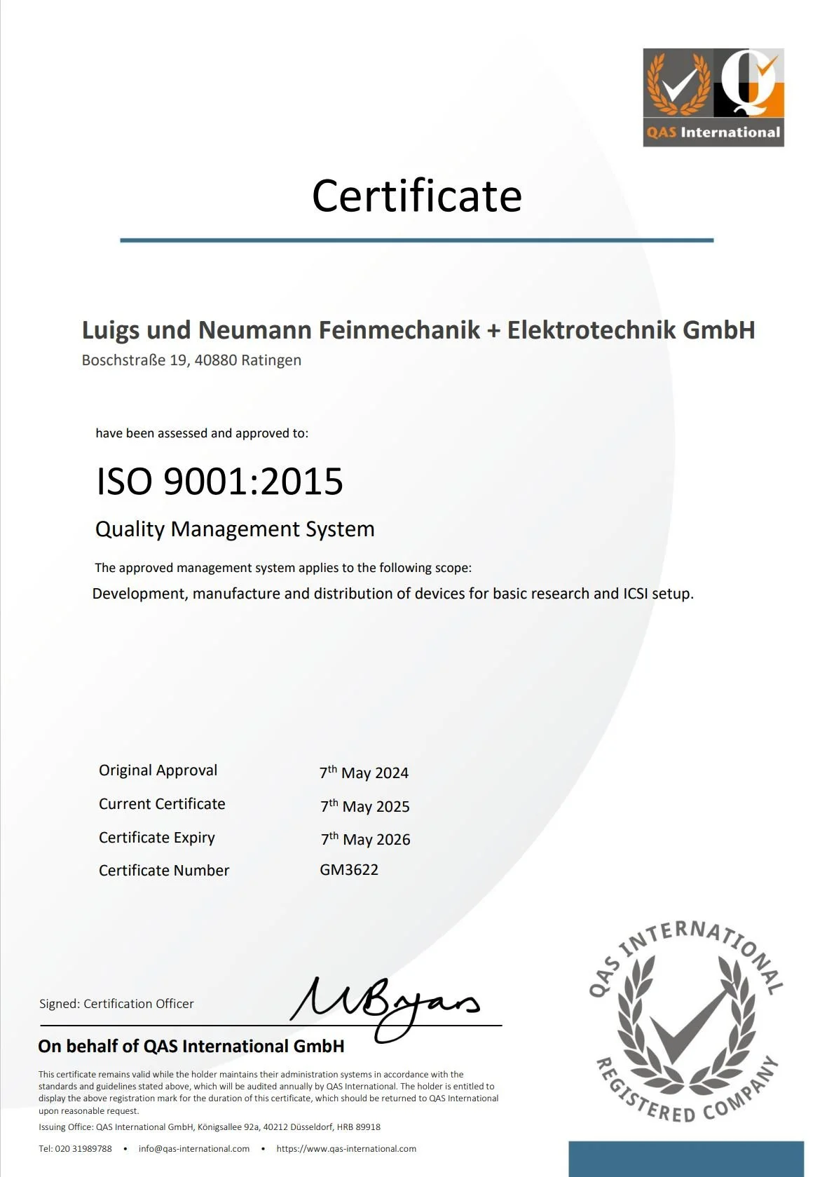 Luigs & Neumann September 1, 2025 ISO 9001 certified Luigs & Neumann September 1, 2025 Luigs & Neumann is ISO 9001 certified to offer the best customer experience.
